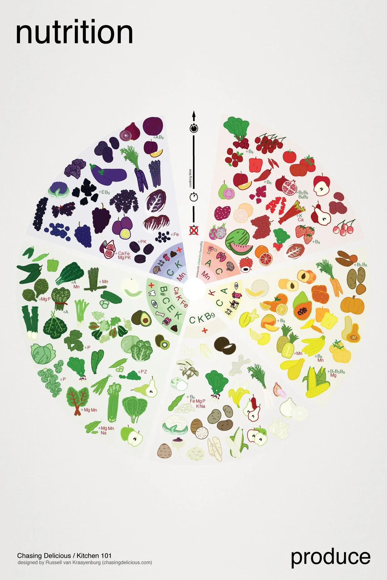 Students can then create their own smoothie recipe and write it up on a recipe card. Above is a smoothie chart that I created to make it simple to teach SMOOTHIE MAKING. And below is an incredible chart of the vegetable and fruit nutrition rainbow that was created by Russell van Kraayenburg for Chasing Delicious, who was so kind to offer this image for the purpose of educating kids and adults on this very topic.